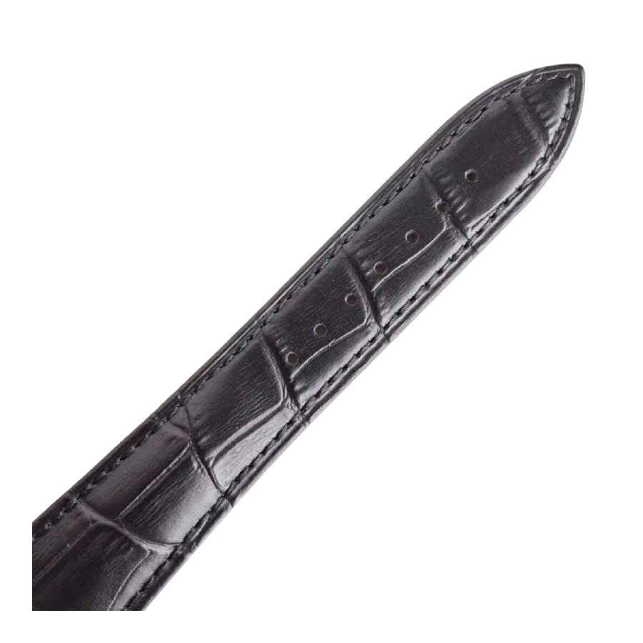 The black dial is adorned with clean stick indices and matching hands—all crafted from 904L stainless steel—creating a subtle yet luxurious contrast. Paired with a black leather strap and stainless steel fold clasp, this piece mirrors the fit and finish of the original in every detail.